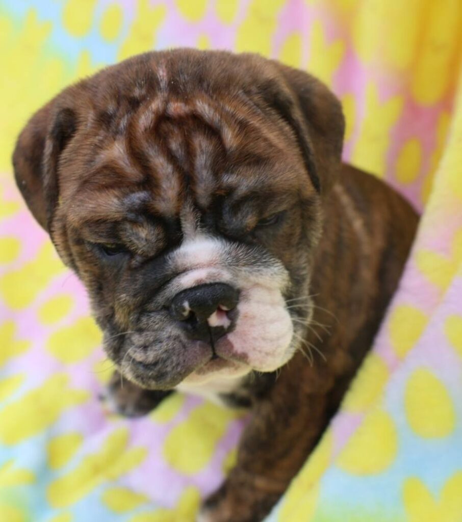 I have, on average, 3-4 litters of English Bulldog puppies per year and ensure that my females are not bred more than once per year. I go to great lengths to make sure the puppies are happy, healthy, socialized, and receive plenty of love. The bulldog puppies are raised in my home with my family in a clean & healthy environment, as well as given plenty of attention. In addition to their environments, their bloodline is also very healthy.